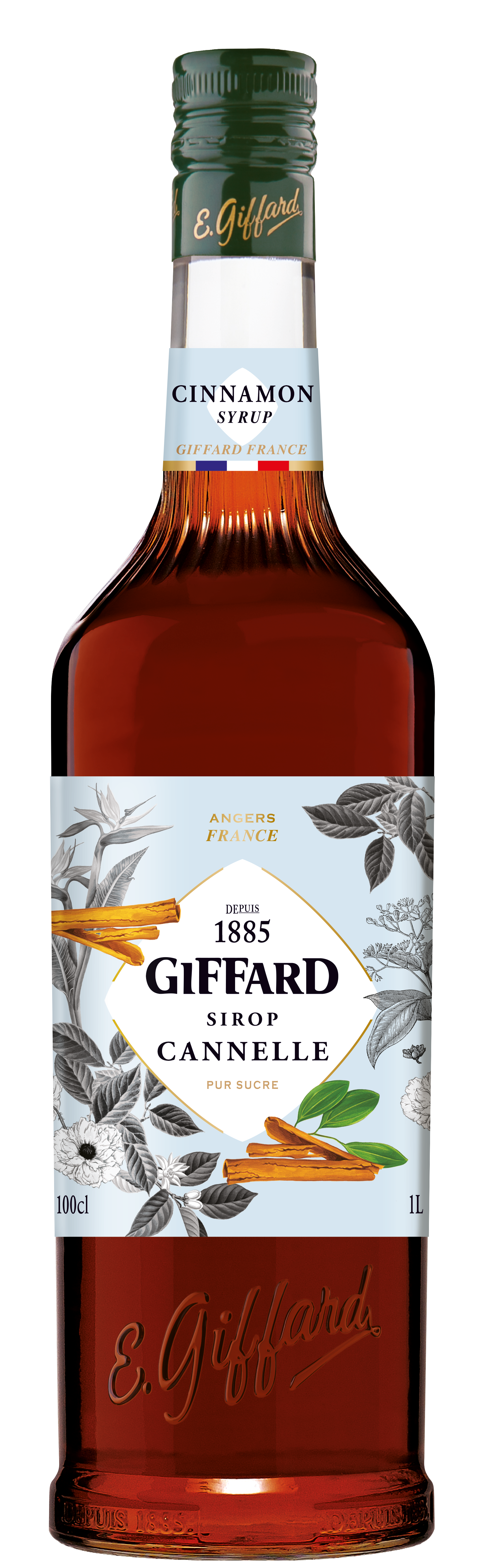 - Non-alcoholic cinnamon syrup produced by Giffard in Angers, France
