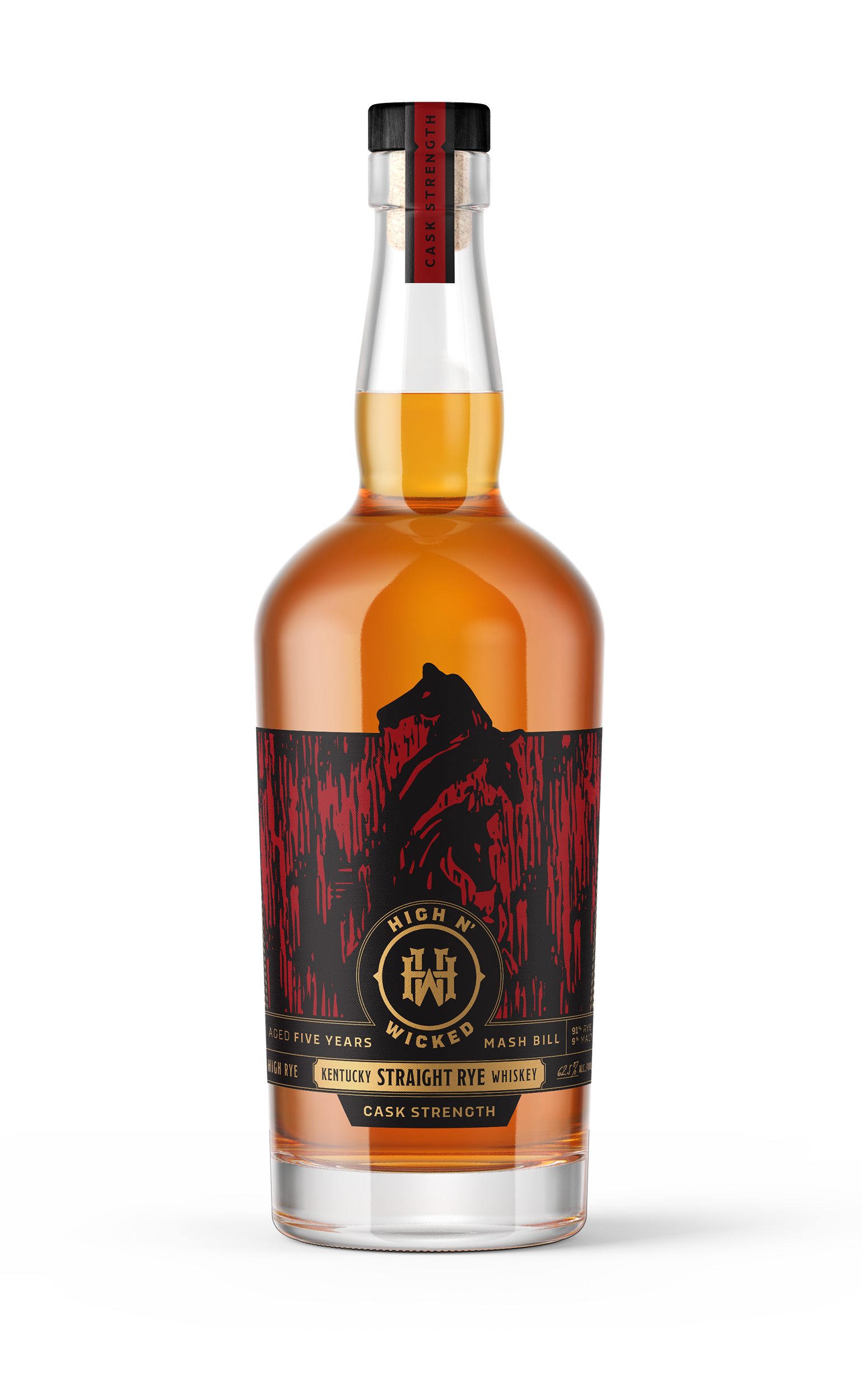 - Cask strength Kentucky straight rye whiskey distilled, aged, blended, and bottled for High N’ Wicked